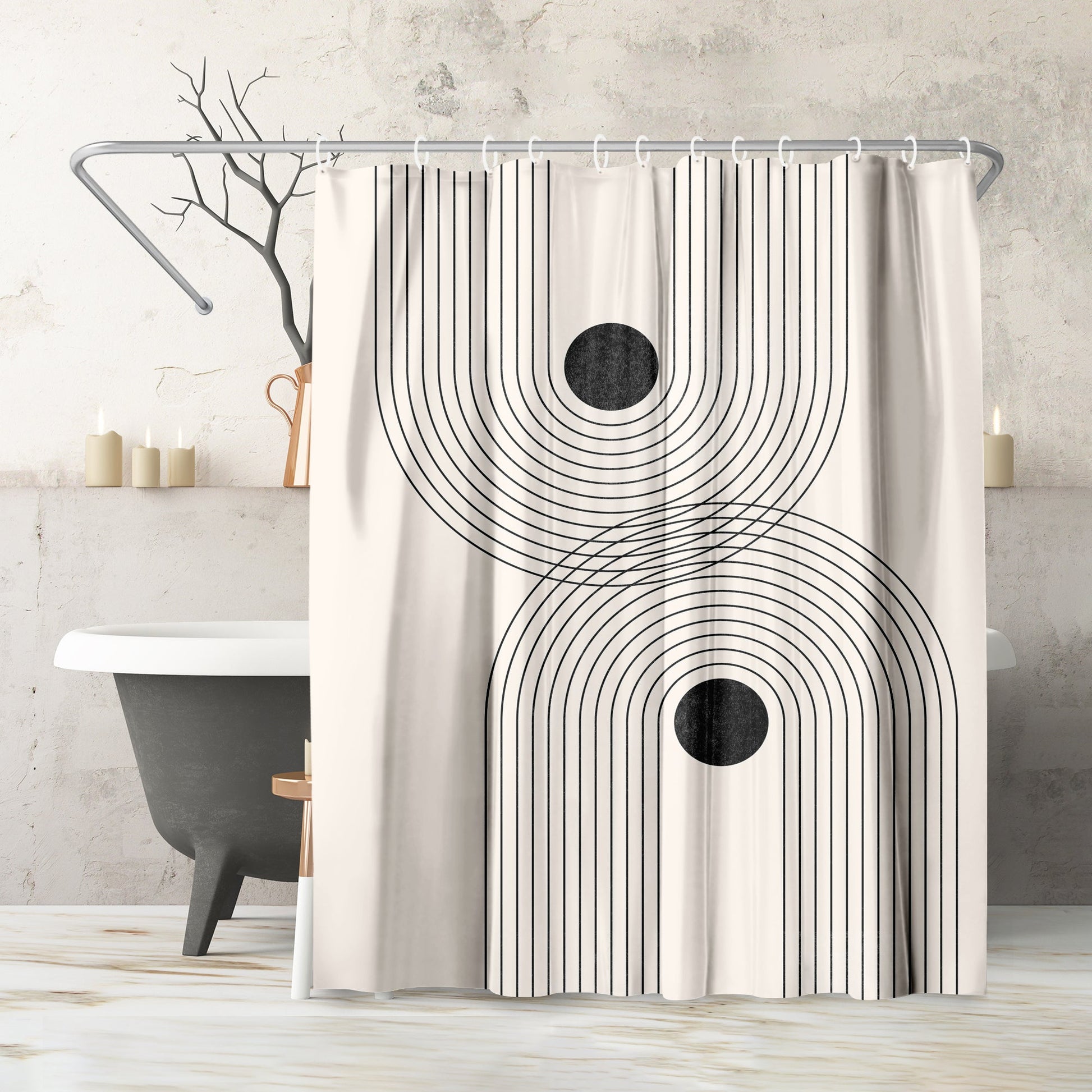 71" x 74" Boho Shower Curtain with 12 Hooks, Black Geometrical Line Art 2 by Tetyana Karankovska