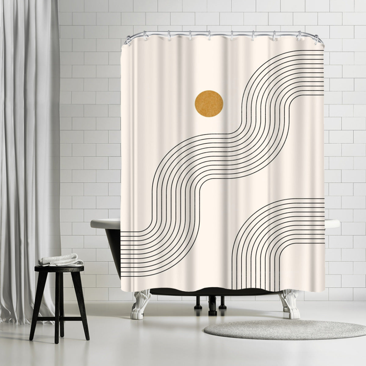 71" x 74" Abstract Shower Curtain with 12 Hooks, Boho Geometric Lines Part 3 by Tetyana Karankovska