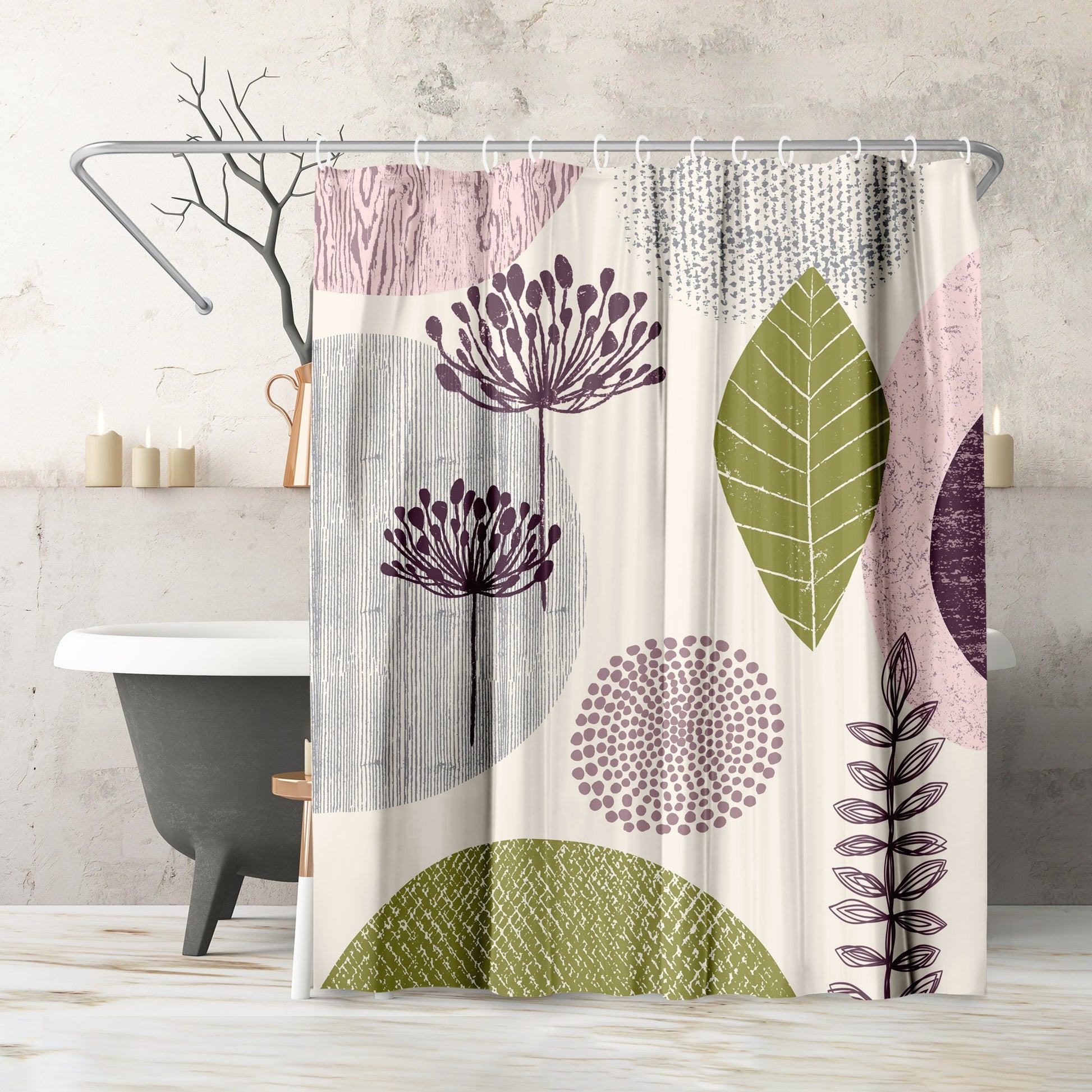 71" x 74" Abstract Shower Curtain with 12 Hooks, Floral Pattern by Lisa Nohren