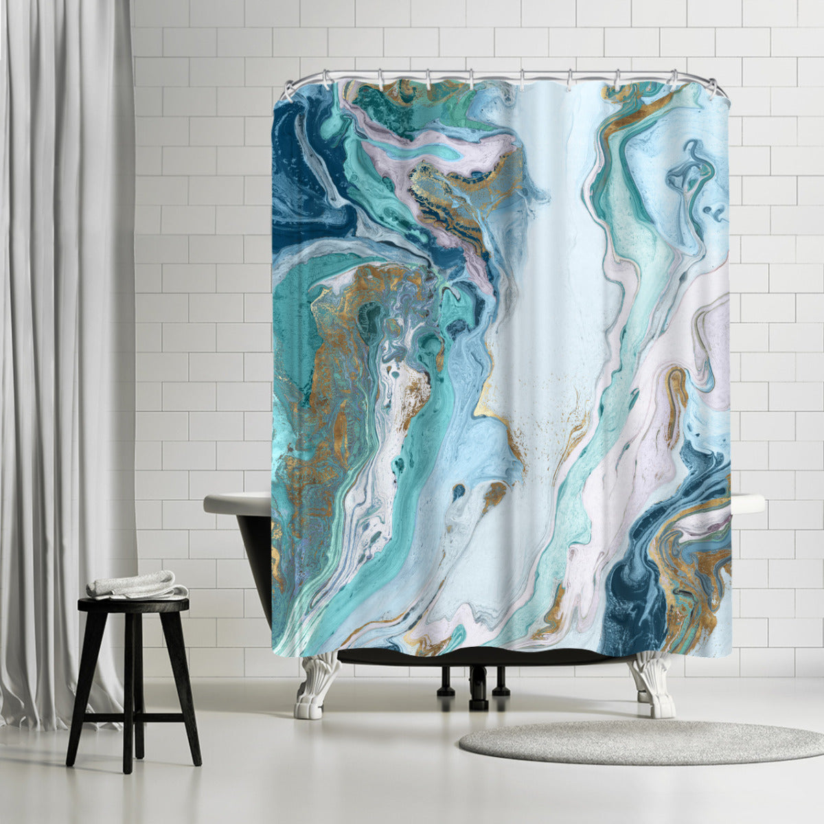 71" x 74" Abstract Shower Curtain with 12 Hooks, Marble Petroleum Ii by PI Creative Art