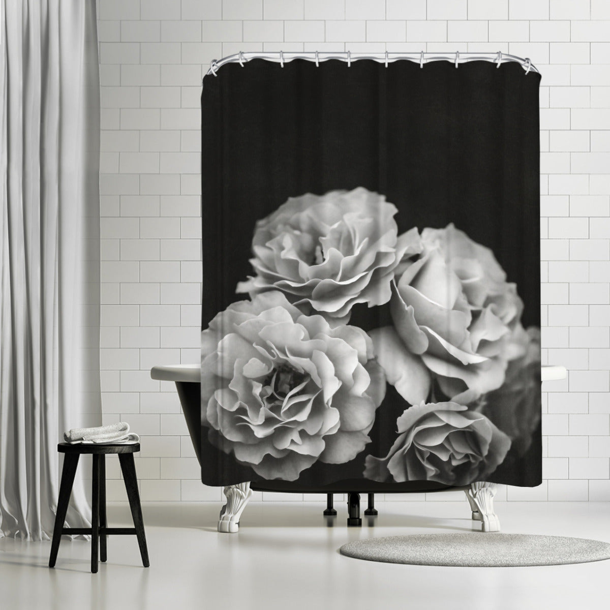 71" x 74" Floral Shower Curtain with 12 Hooks, Moody Roses by Chaos & Wonder Design