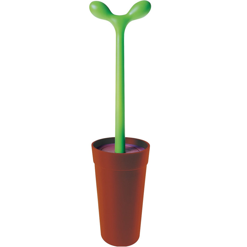 Created as part of the F.F.F. (Family Follows Fiction) metaproject, an operation in the early 1990s that aimed to explore the affective structure of shapes and objects, starting from the idea of reproducing the object creation process followed by children and primitive cultures. In Stefano Giovannoni's design, the toilet brush is transformed from an "off limits" object into a svelte pot holding a long and strangely inviting shrub. This product scandalised the orthodox world of design, and has been hugely successful over the years.