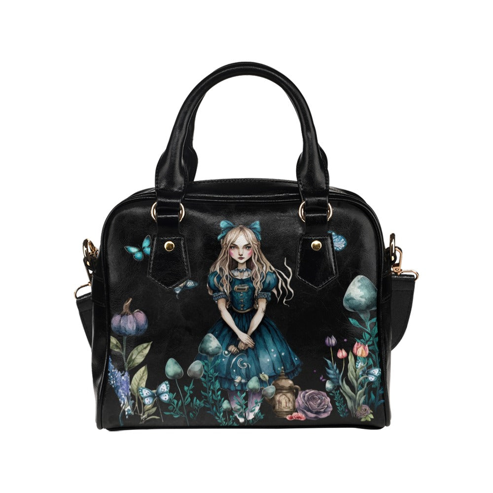 Dark Alice In Wonderland Handbag #3, Blue Dress Bowler Bag Purse