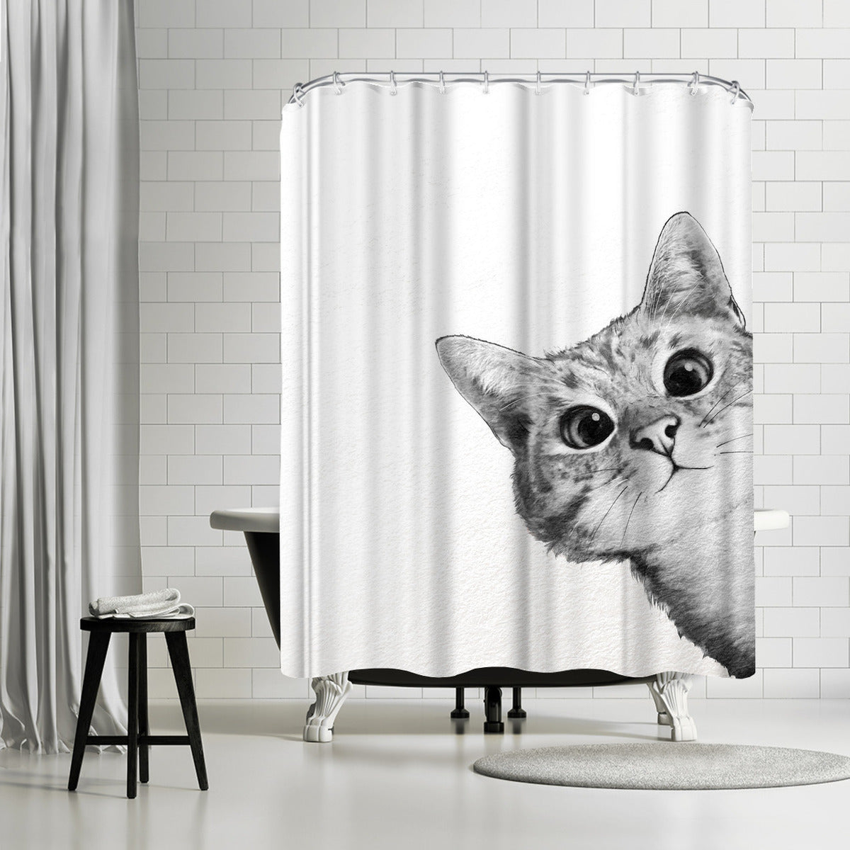 71" x 74" Decorative Shower Curtain with 12 Hooks, Sneaky Cat by Laura Grave