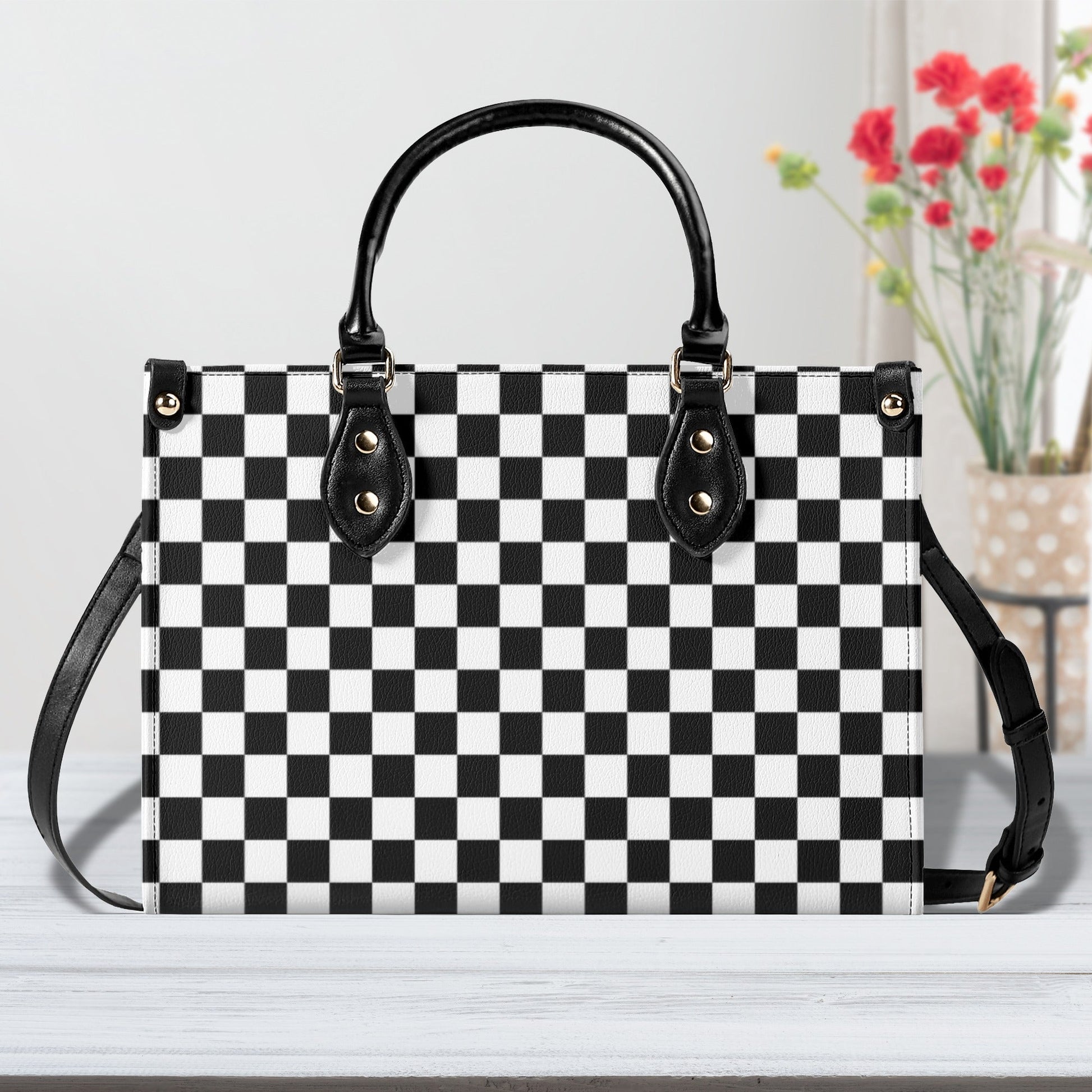 The Black & White Checkered Luxury Womens PU Leather Handbag is a stunning and stylish accessory for any outfit. Made from high-quality PU leather, this handbag features a simple black and white checkered pattern to match any emo, punk or Goth style. The spacious interior is perfect for storing daily essentials and the adjustable shoulder strap provides comfort for carrying. Whether for everyday use or a special occasion, this handbag is sure to turn heads and make a statement.