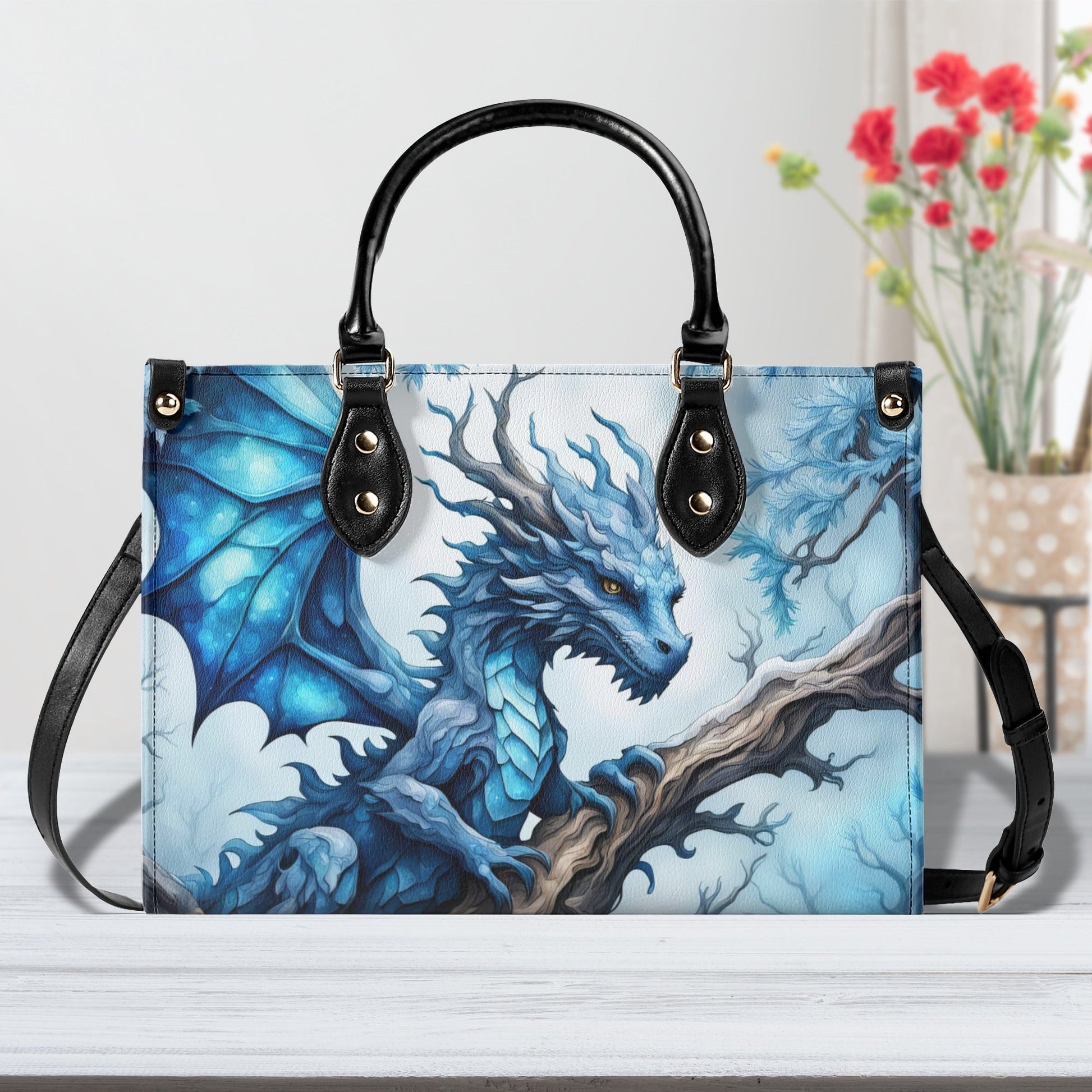 Blue Ice Dragon Luxury Womens Vegan Leather Handbag