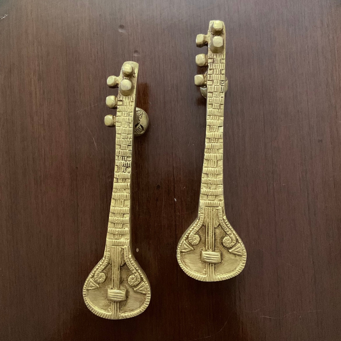 Introducing our beautiful brass veena door handle, crafted with the highest quality materials to ensure durability and long-lasting beauty. Featuring a stunning depiction of veena, the handle is perfect for adding a touch of elegance and spiritual energy to any door. This door handle is designed to withstand the test of time and remain in excellent condition even after years of use. Its intricate design and detailed craftsmanship make it a true work of art that will add an element of beauty and grace to any room.