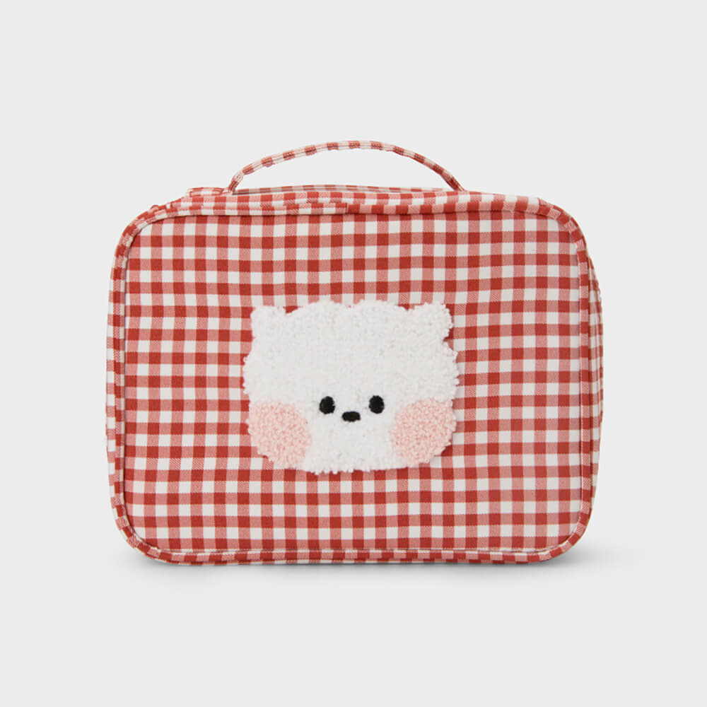This multi pouch offers spacious storage for cosmetics, electronic devices, and more. It features an adorable BT21 minini face made of boucle material as a charming accent. With it's wide zipper design, you. can easily open and close it, allowing for tidy organization of your belongings.