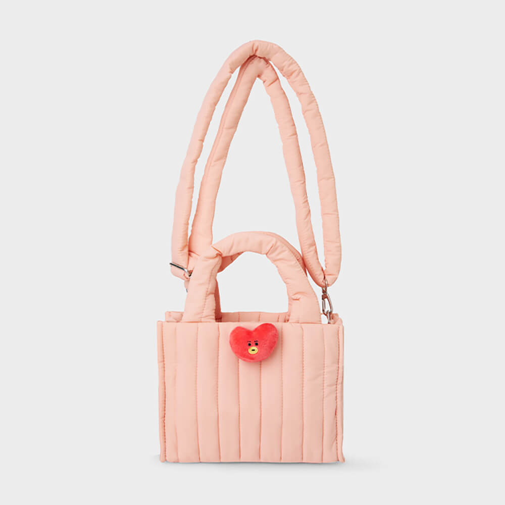 While we may appear small, we're surprisingly spacious. This bag showcases an adorable BT21 face plush charm as a detail, along with lightweight quilted fabric that won't weigh down your load. Ideal for carrying your essentials when you're on the move, its detachable shoulder strap enables versatile styling, easily transforming from a tote to a crossbody, giving you a two-way option.