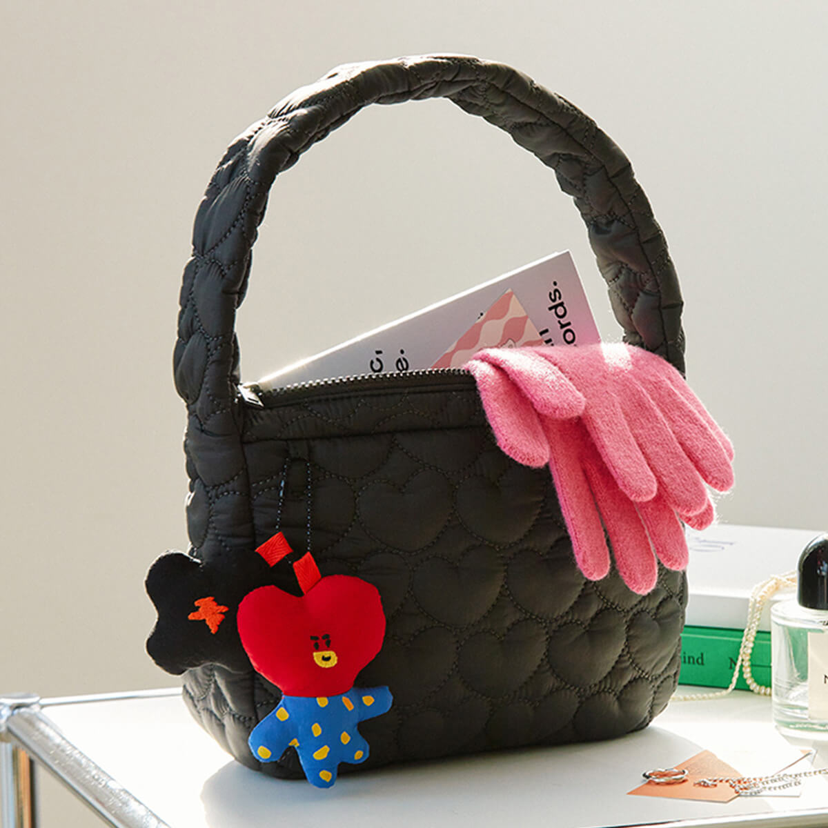 Warm colors of hand drawings give out winter vibes! Meet the unique and sensitive quilt edition that does not even need decoration for attention. This hobo bag features BT21 character quilting detail & cute keychain.