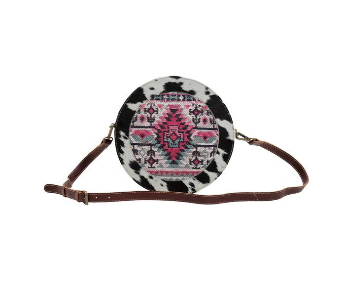 Invest in this round bag with strap around to have your collection of accessories graced by the quirky casual look of this bag.