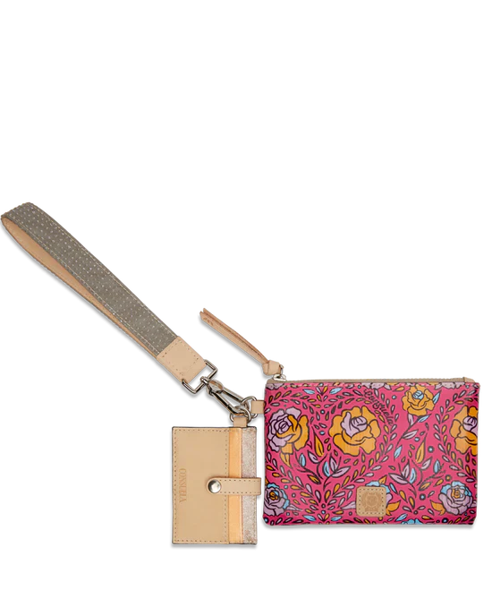 The Combi, a combination of on-the-go accessories, is a new way to carry your keys, cards, and the small stuff at all times. This colorful wristlet wallet includes a pocket pouch, secure card slot wallet and fits comfortably around your wrist- ready for your next journey.
