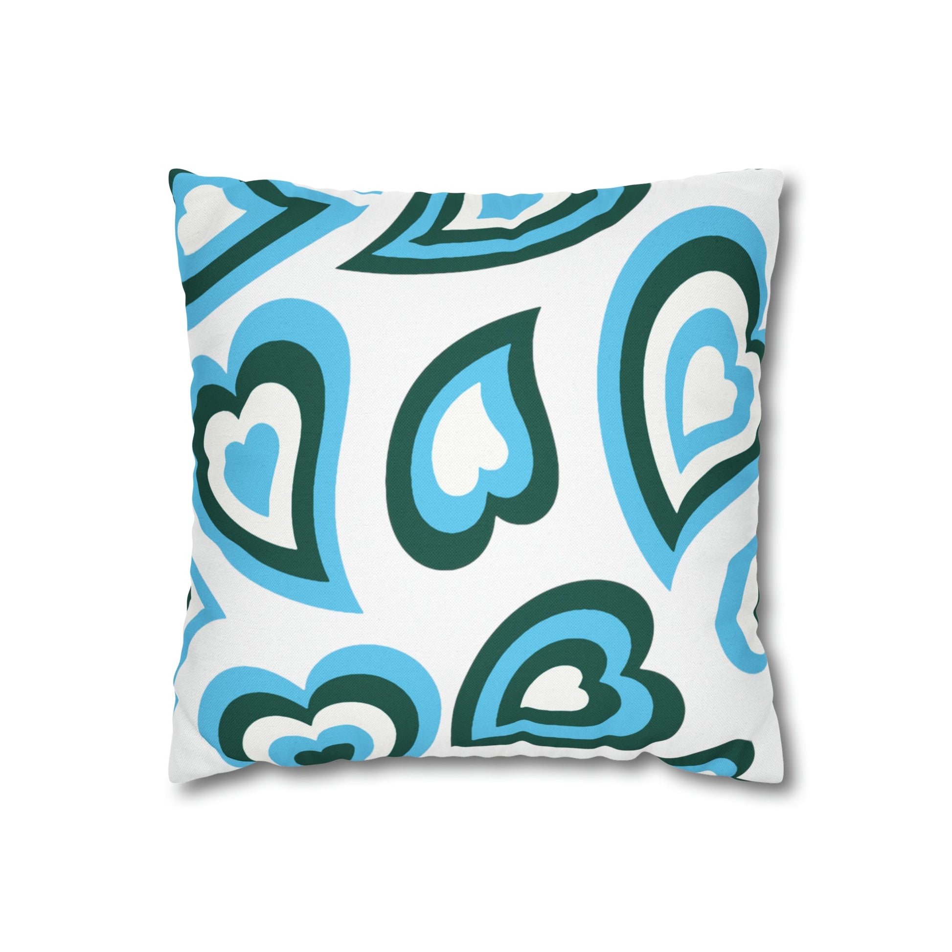 Retro Heart Pillow Cover - Blue and Green, Heart Pillow, Hearts, Valentine’s Day, Tulane, Roll Wave, Bed Party Pillow, Camp, dorm decor