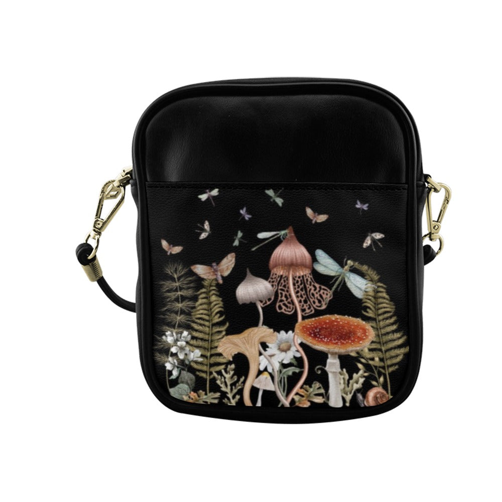 Cottage Mushrooms Mini Sling Bag, Small Phone Purse