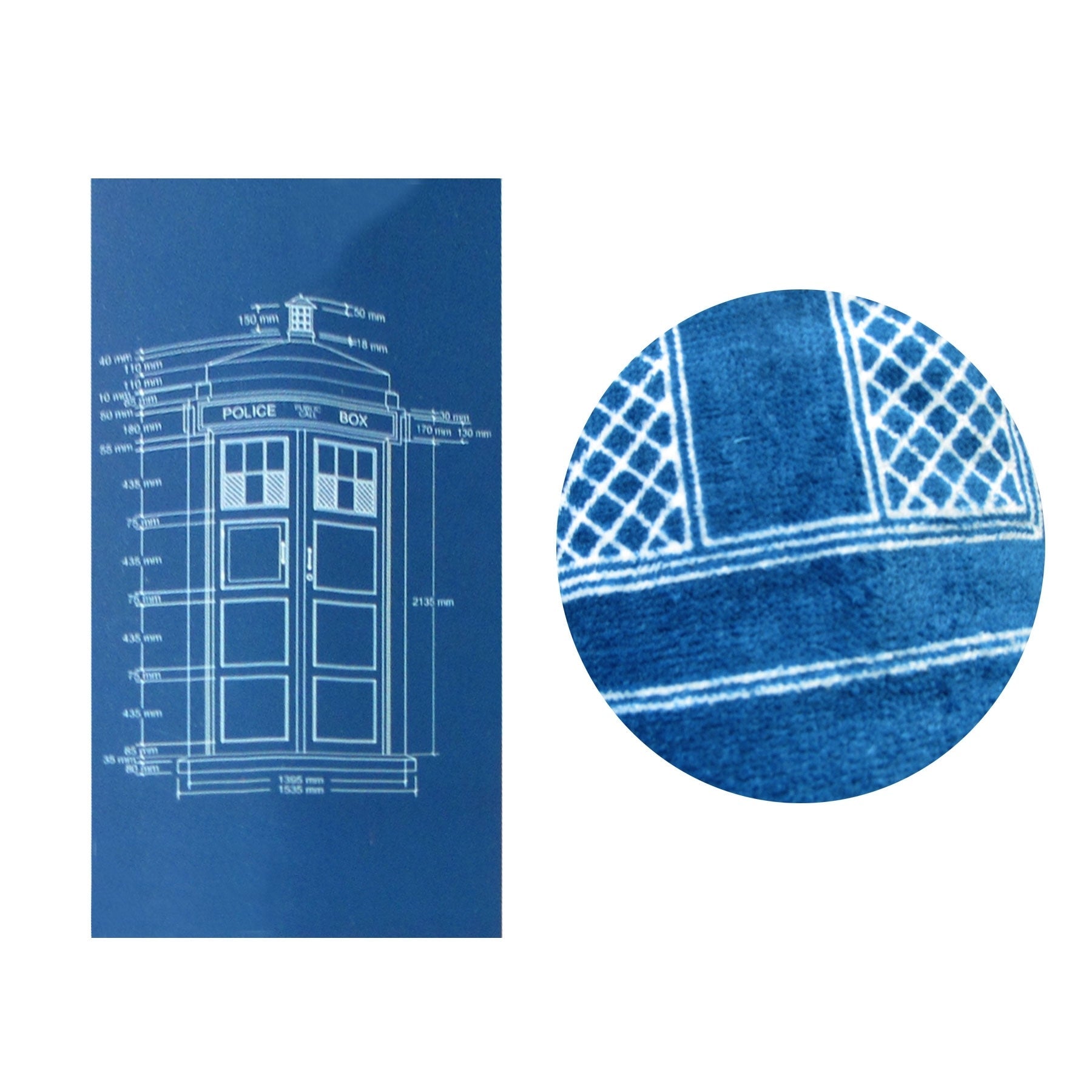 Have fun in the sun with this Doctor Who 100% Cotton Licensed Bath / Beach Towel 75 x 150 cm. Perfect for summer time at the beach or laying out in the sun. It features a blueprint plan design printed in blue and white colour tones. It is made from absorbent 100% Cotton fabric to keep you dry quickly with long lasting quality.