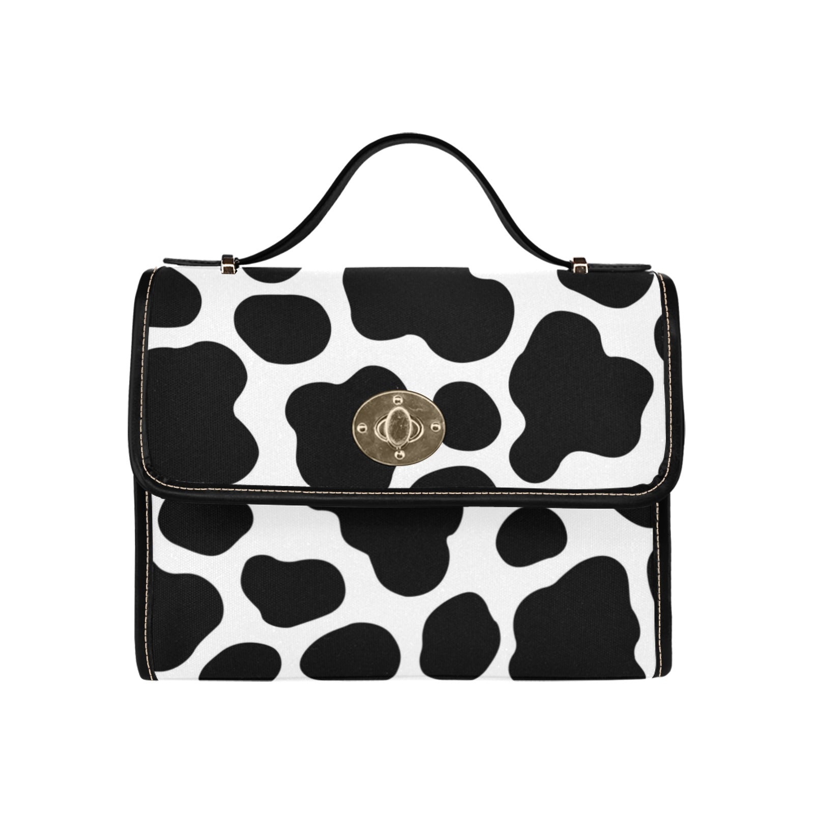 Introducing our Cow Print Canvas Satchel Bag Purse, Cross Body Bag! This fun and fashionable bag is perfect for all your daily needs. The stunning black and white canvas makes it a great accessory for any outfit. The spacious interior has plenty of room for all your essentials, and the adjustable cross body strap allows for comfortable wear all day long. Whether you're heading to work, running errands, or enjoying a day out with friends, this bag will quickly become your go-to accessory. Don't wait - order yours today!
