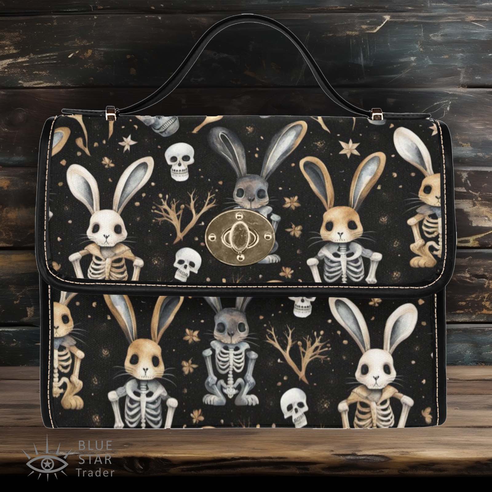 Creepy Bunny Rabbit Purse, Goth Handbag Skulls Skeletons Canvas Satchel bag