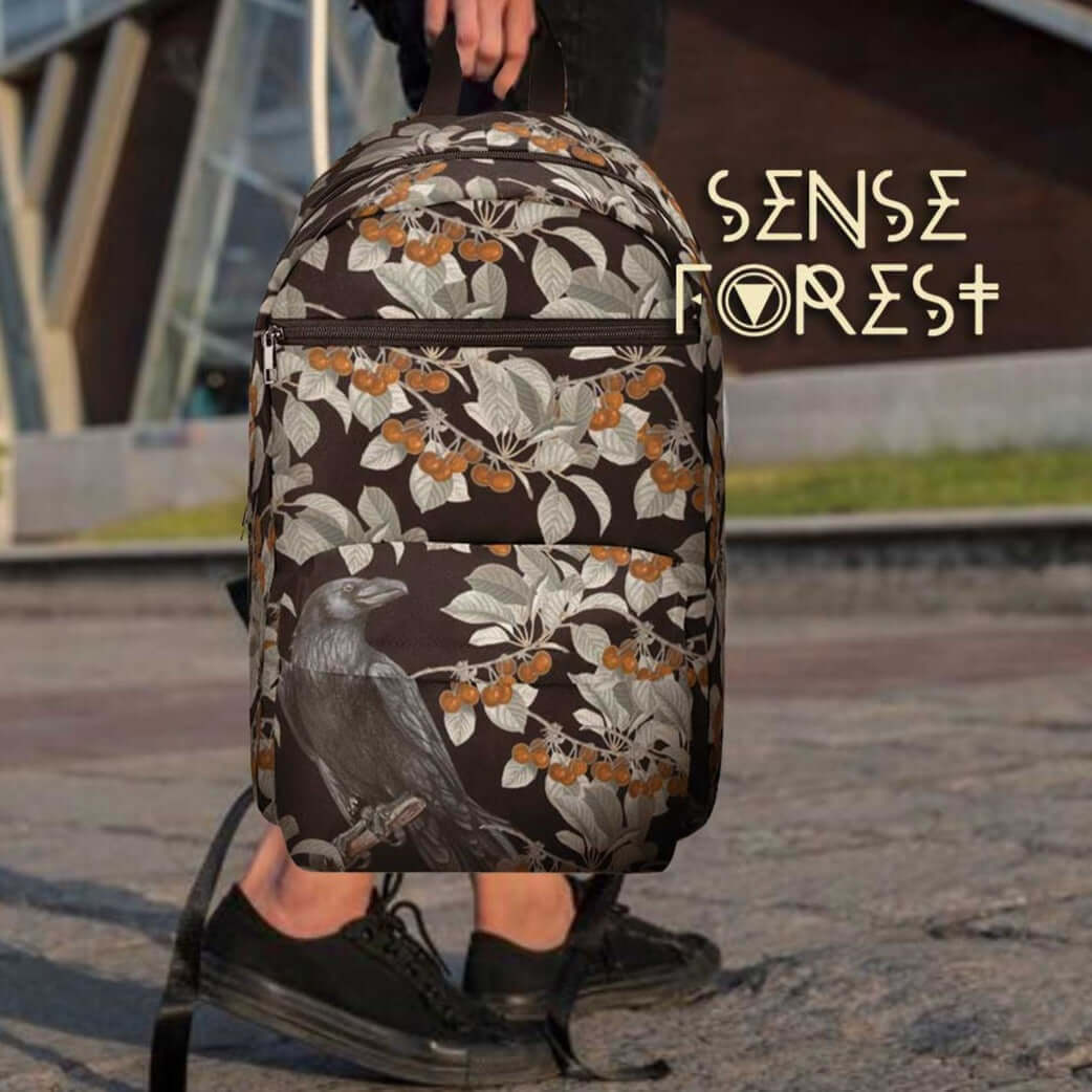 Crow in berry bush witchy Raven backpack Travel Backpack(Large Capacity)