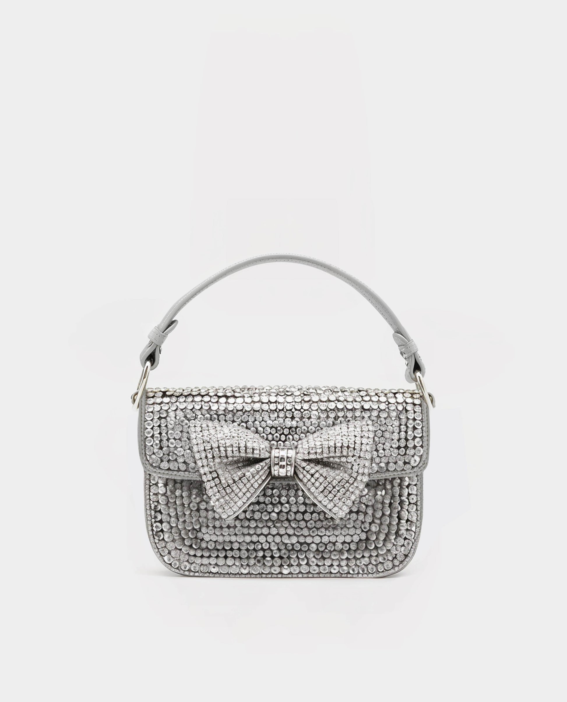 Crystal Bow Flap Handbag - Silver