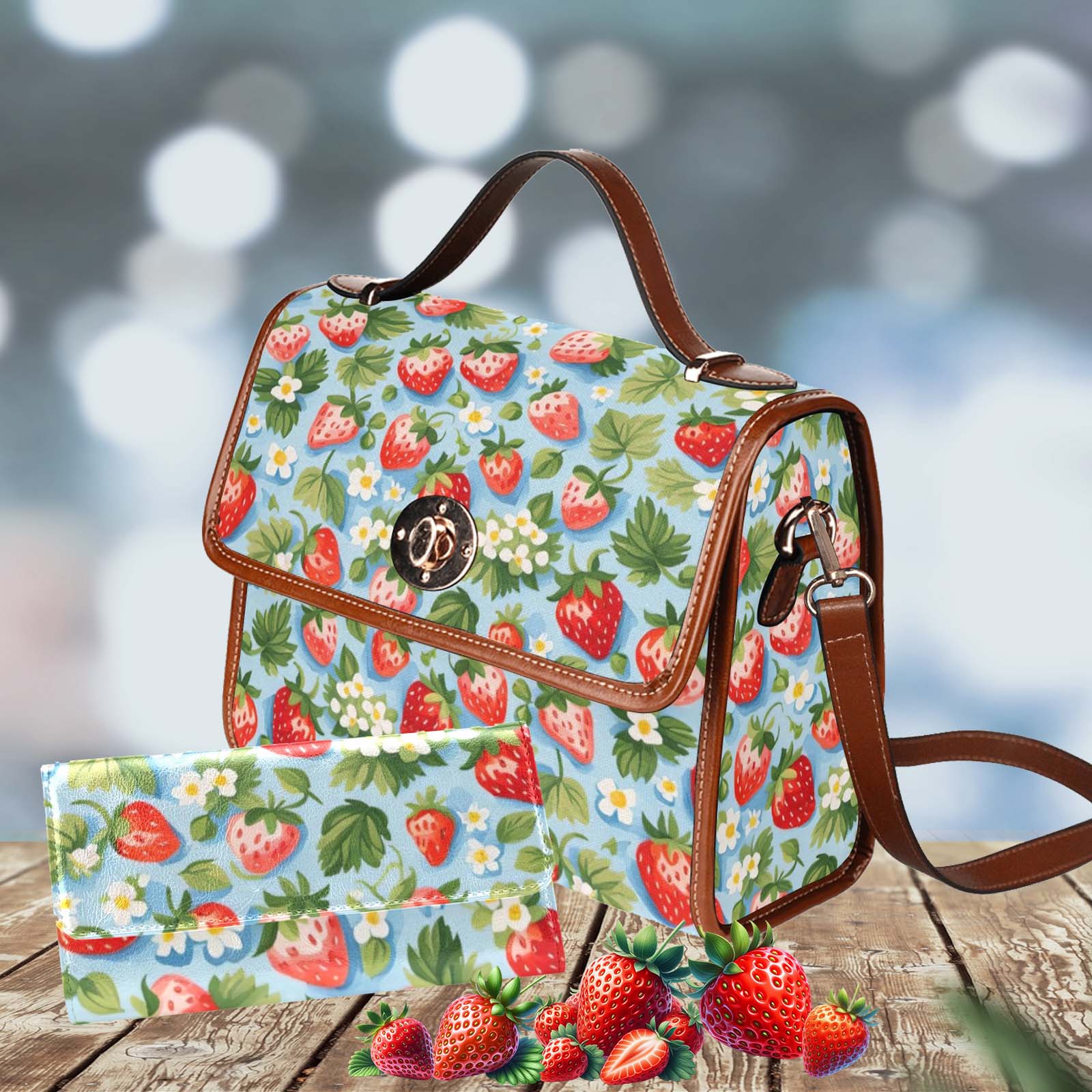 With its spacious interior and comfortable shoulder strap, it's the perfect accessory for any occasion. Whether you're heading out to work or running errands, this Strawberries Purse is sure to turn heads. So why wait? Treat yourself or a loved one to this stunning Pastel Blue Strawberries Women's Accessory today and add a little Spring/Summer vibes to your life!