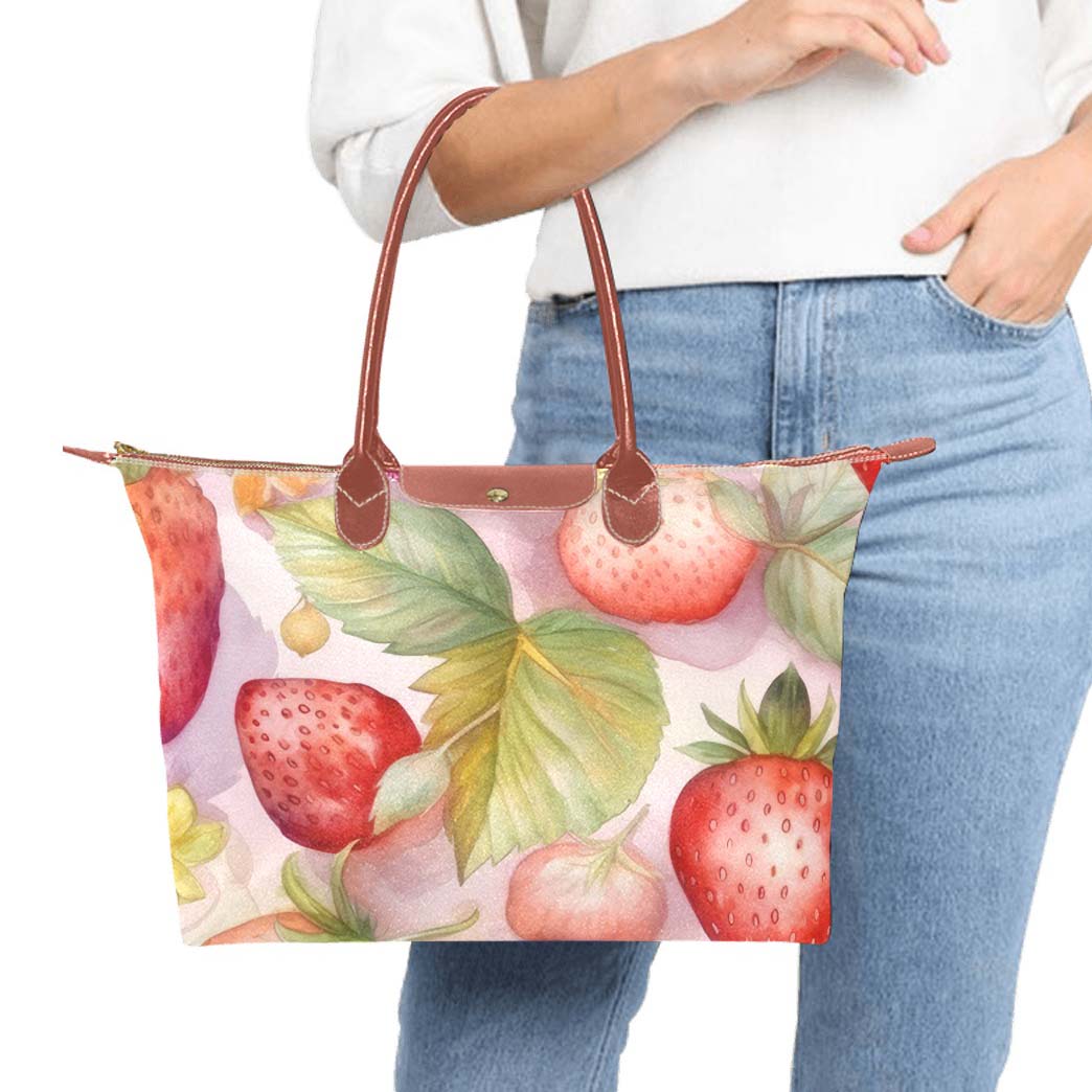 Introducing the Cute Pink Strawberries Bag, Classic 15 Inch Handbag, with pink fruit design. It's such a magical handbag! It's made of vegan leather so it's animal-friendly and cleans up easily. It is large enough to carry a 10.5" x 7.8" tablet or small laptop and your other essential items. This bag can be used as an office tote.