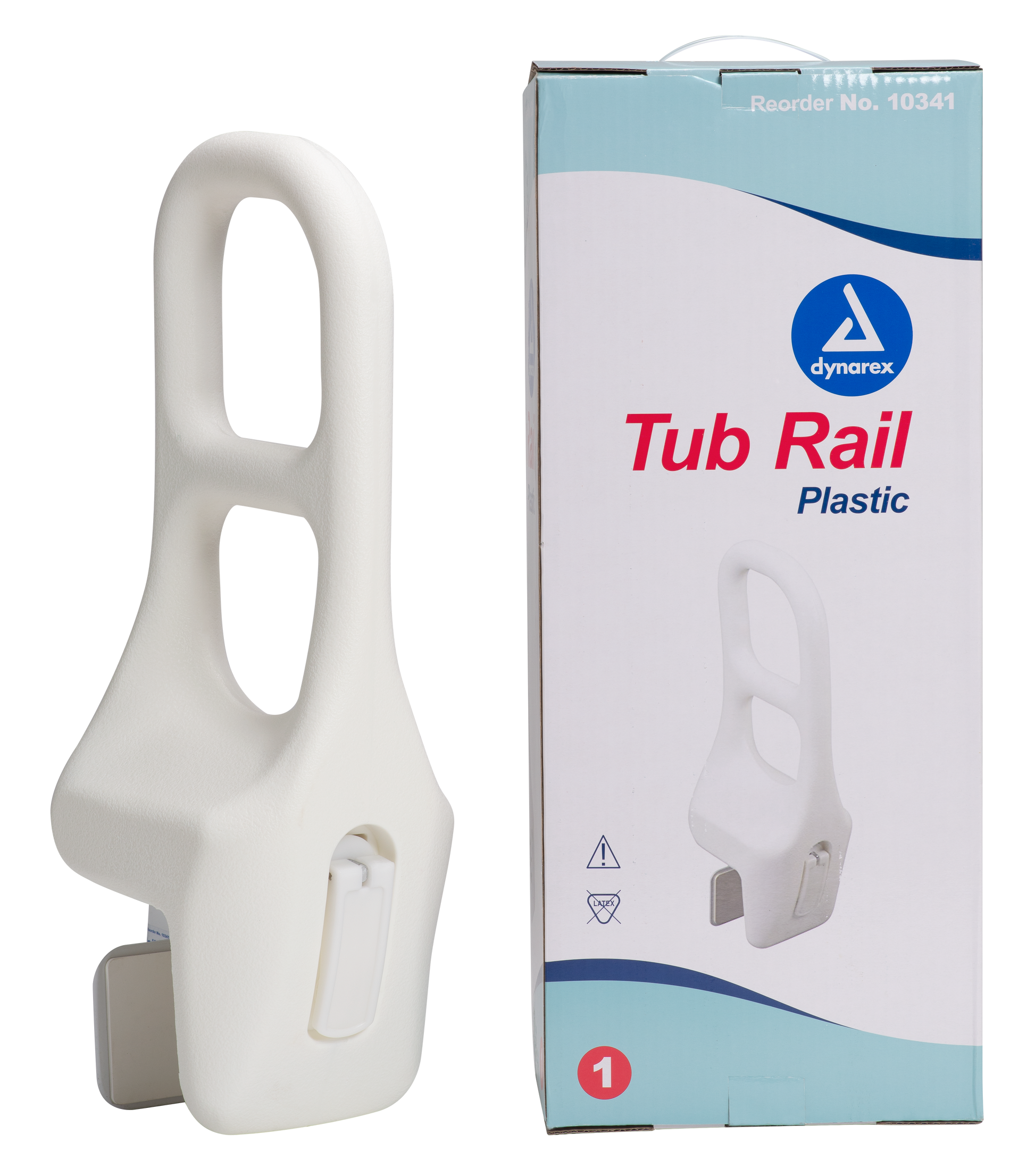 The Dynarex Plastic Tub Rail offers support to individuals who need assistance in moving in or around the bathtub. The rail features tool-free installation and an adjustable locking clamp to fit most tubs. Ideal for a wide range of homecare and institutional healthcare environments.