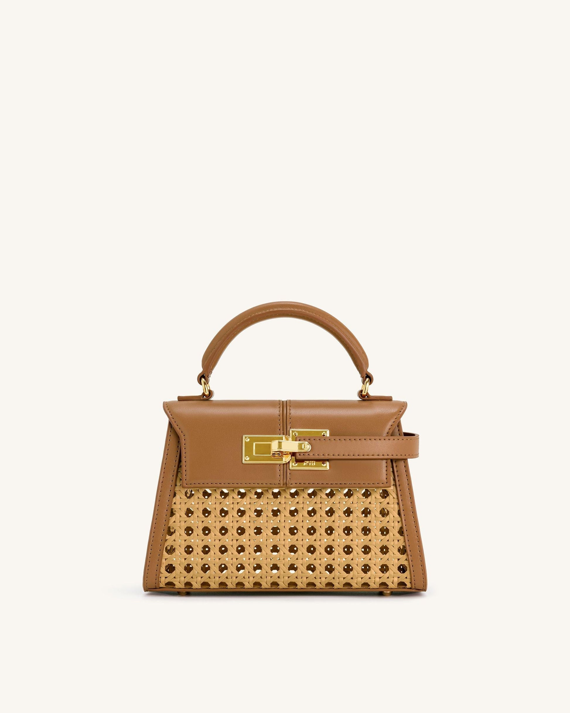 Elise Faux Bamboo Woven Top Handle Bag - Brown
