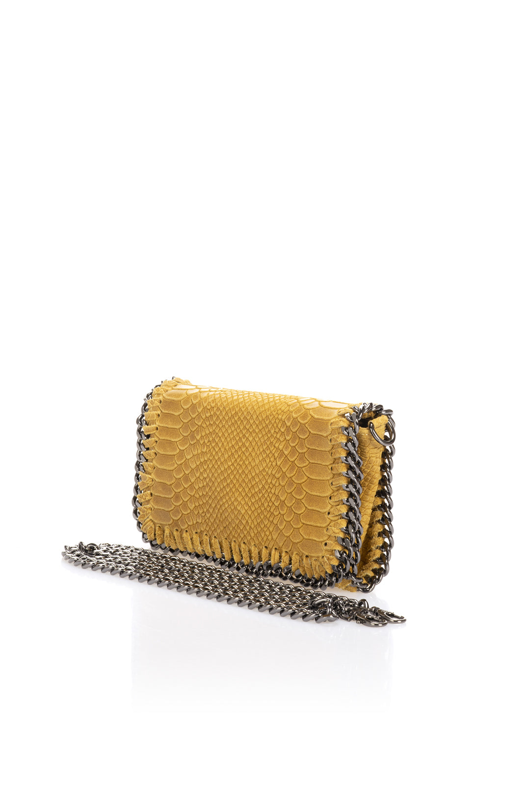 Women's black suede printed leather shoulder bag with a chain shoulder strap, magnet closure and zippered inside pocket. This bag is loved by any woman who wants a sophisticated, compact and always fashionable object. Wear it boldly.
