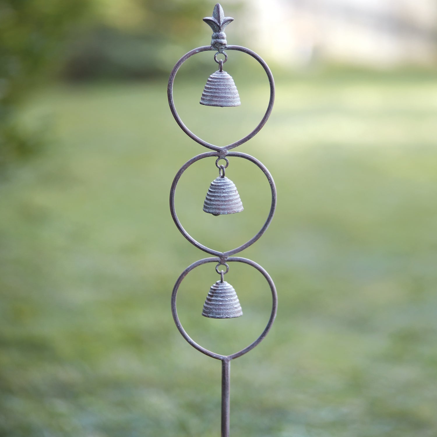 This charming garden stake will provide sweet music to your ears with its cast iron bells. Adorned with the fleur de lis and whitewashed accents, this stake will provide a French countryside look to your garden.