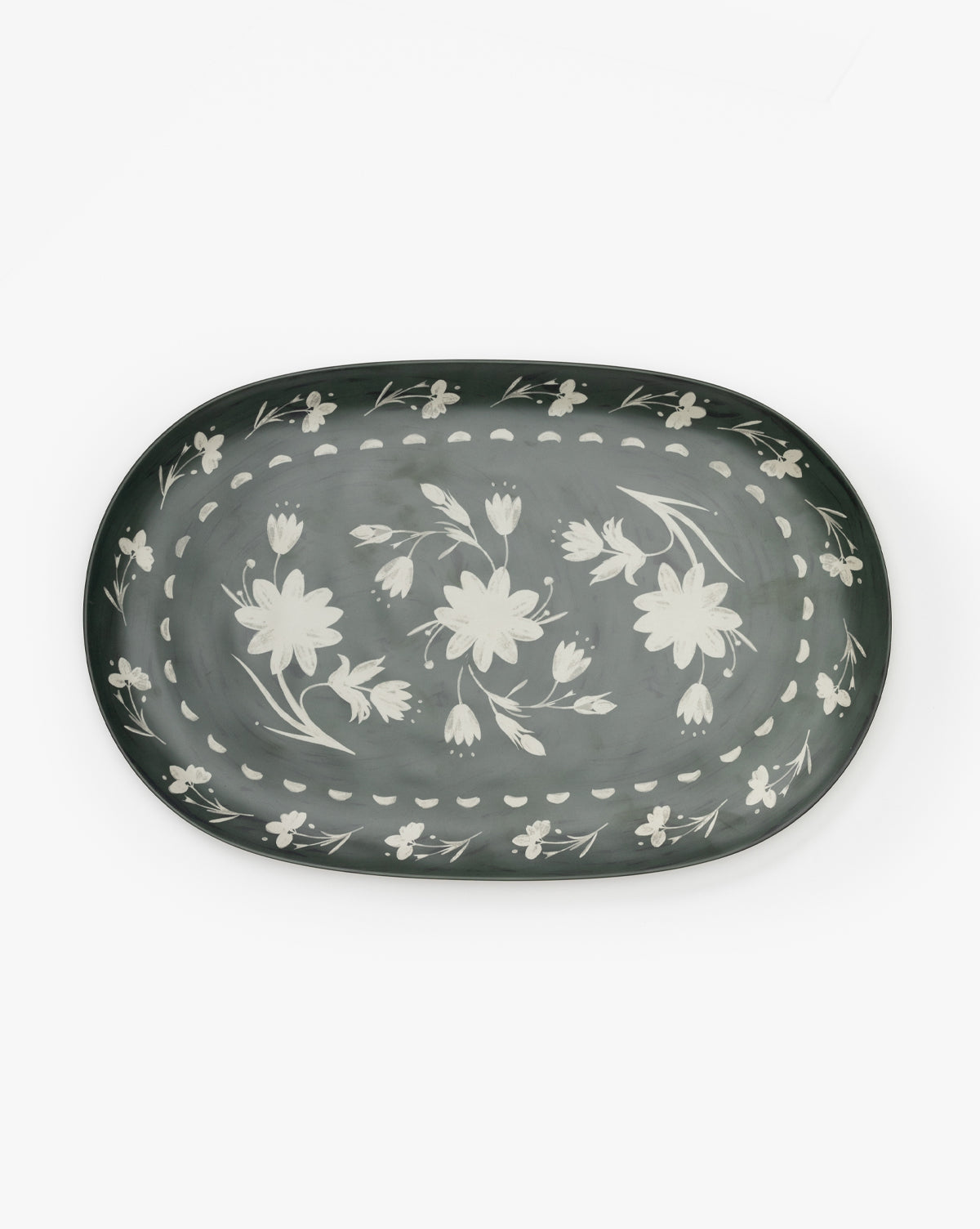 Playful and romantic, the Fontaine Melamine Platter is distinct with its bold floral motif and green hue. The plate’s design lends an artisan feel to its melamine material, giving an effortless touch of rustic formality and timeless beauty to table settings.