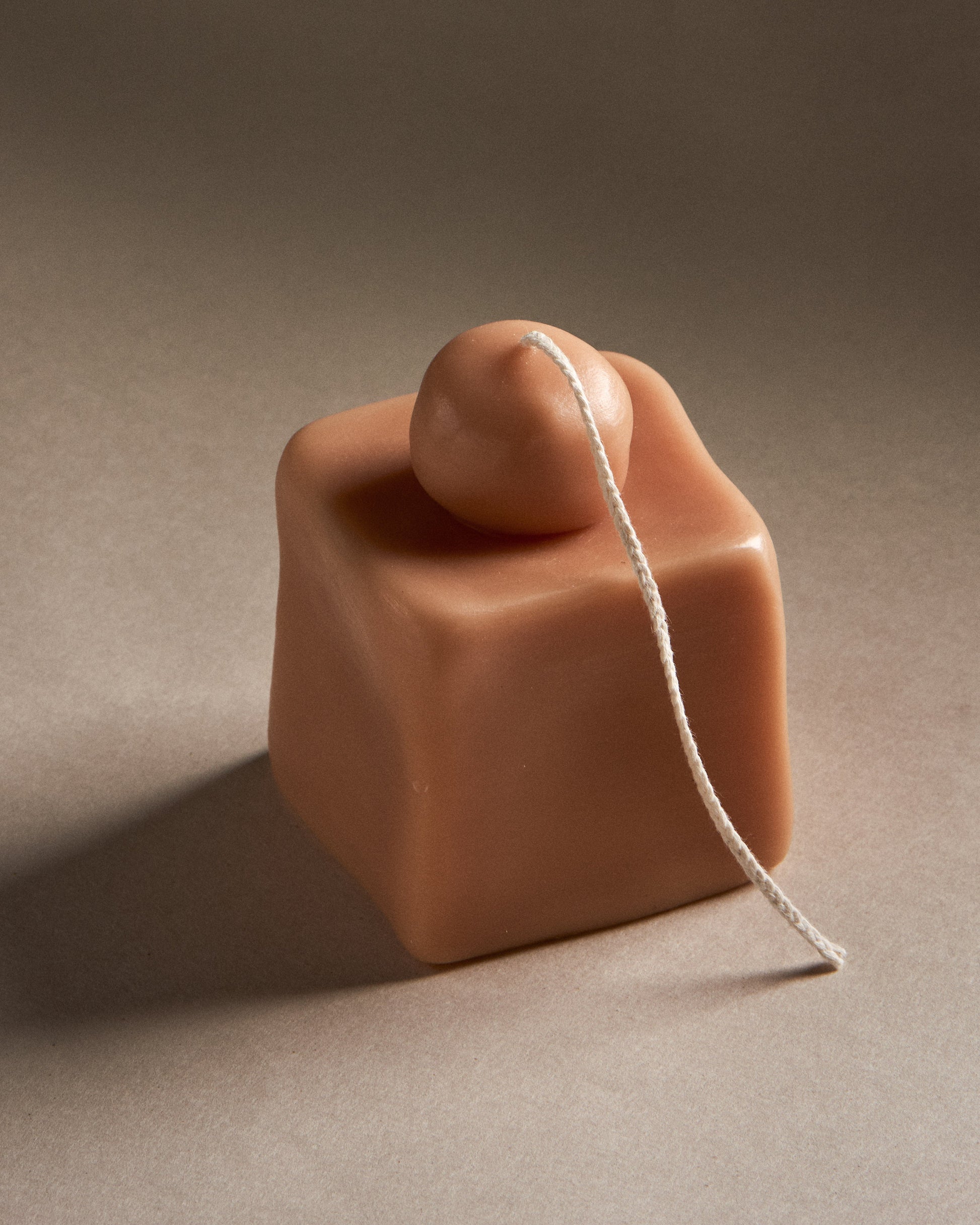 Bring an artful warmth to any tabletop or mantel with this handmade candle. Fonz offers a unique silhouette with a ball playfully perched atop the fluid lines of a gently shaped cube. Each candle is made with a soy wax blend poured into a mold and finished to form with a sculpting knife.