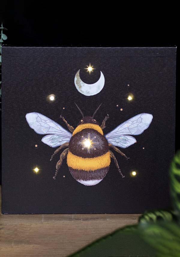 Add a touch of magic to your space with this Forest Bee light-up wall canvas! Features an ethereal forest bee illustration with embedded LED lights to create a mesmerizing glow! Add to your home for a mystical feel!