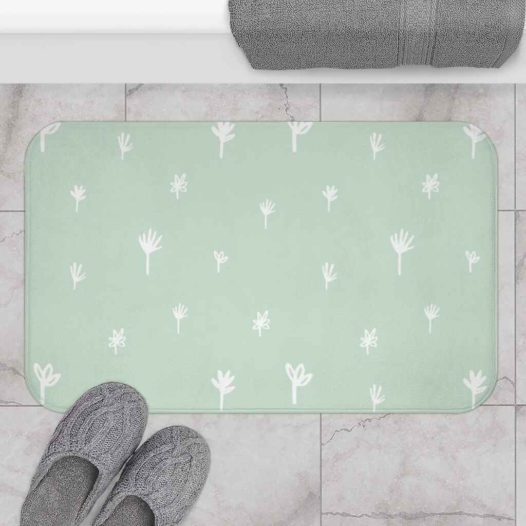Stylish Washable Ultra-Soft Green Floral Bath Mat