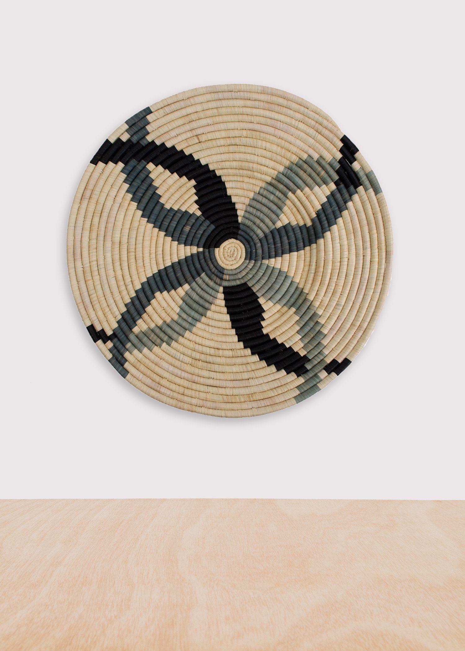 Intricately crafted with timeless tradition, this carefully dyed raffia fiber and sweet grass wall plate is a stunning statement piece. Style it in any room for a globally inspired feel. This beautiful wall plate is the perfect size as a stand alone piece or pair it with plates and trays for the cool color blocked family to create an eye-catching basket wall.