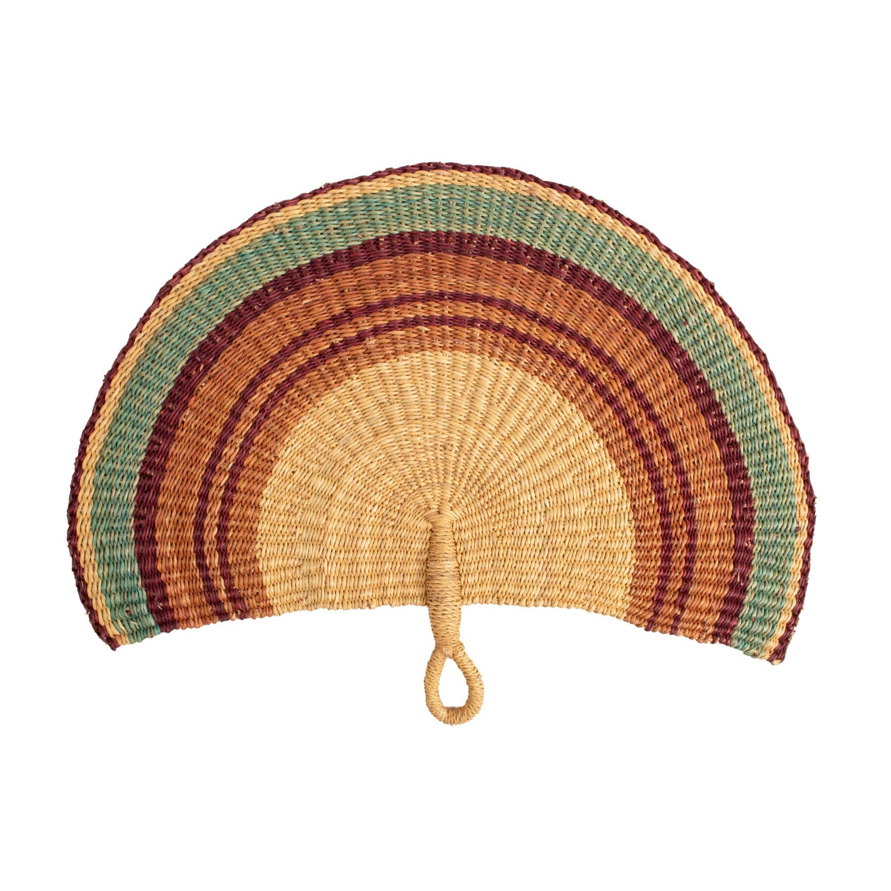These handwoven fans meet all your needs. Hang as wall art or style it on a bookshelf. Easily hang our fans with the loop at the base of the handle. These beautifully designed fans will transform your home decor. Buy them for yourself or as a thoughtful gift for a friend or loved one. Made in an ethical, fair trade environment with the Nest Seal of Transparency.