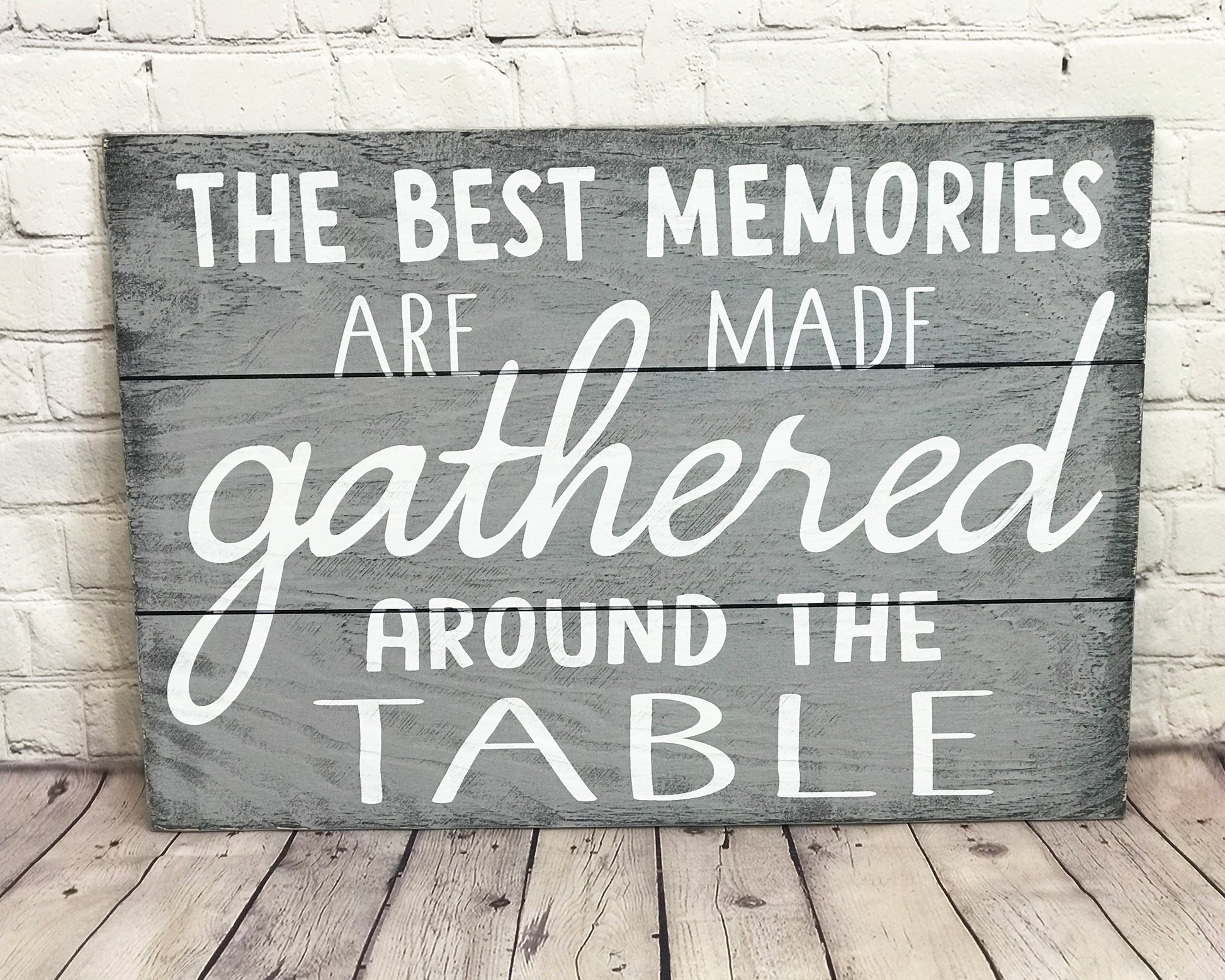 The Best Memories Are Made Gathered Around The Table With this sign hanging on your wall, you'll be reminded of all the great memories you have created while gathered around the table.