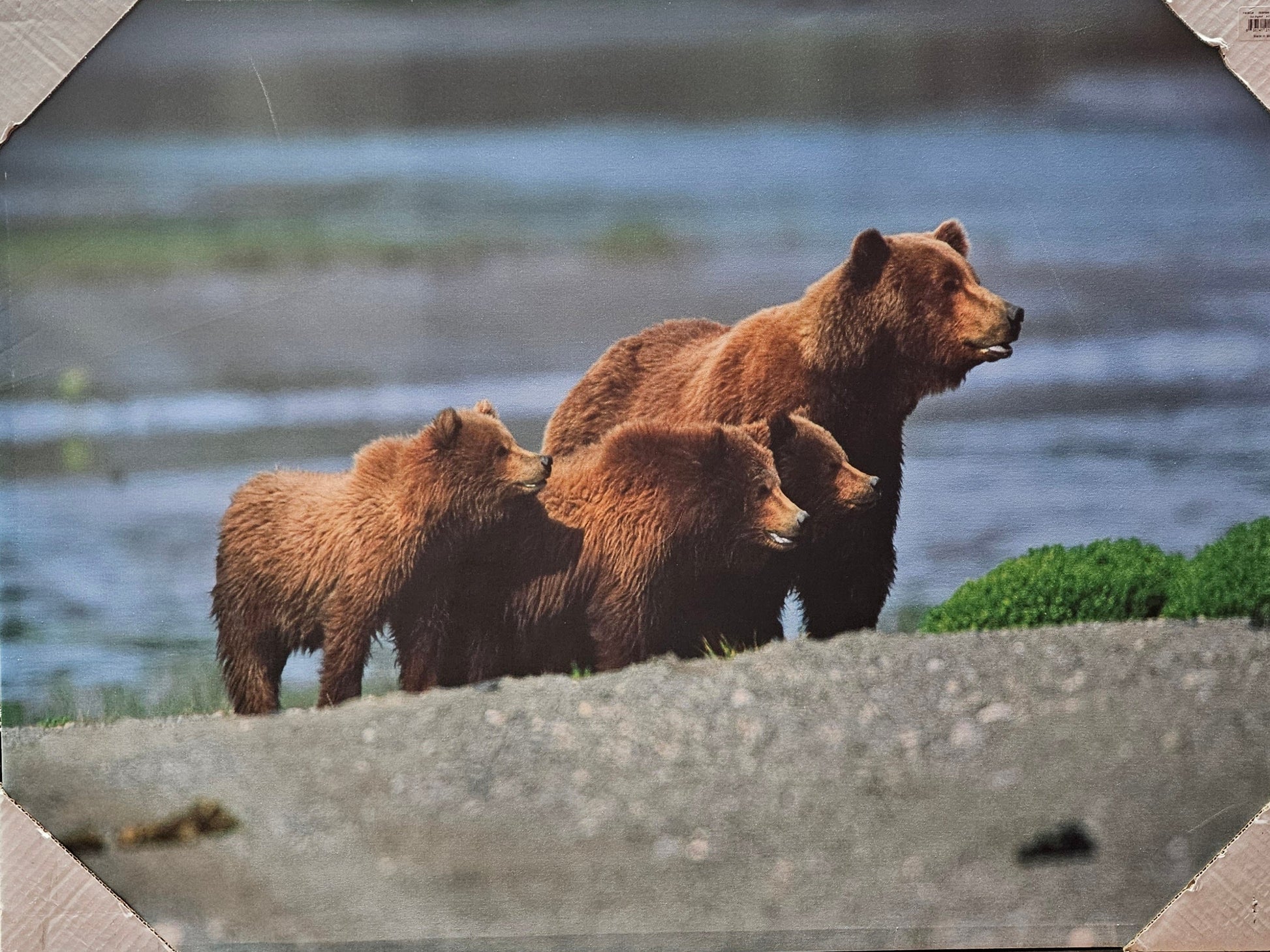 Canvas 40 x 30 of brown bear and her 3 cubs