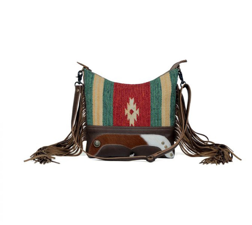 Ready to make a statement, this Saddle Up Bag is engineered for the individual on the go. Rustic fringe and hair-on hide features with a striking handle woven rug body and thick canvas backing. Adjustable leather straps that can be removed, and a large compartment perfect for carrying your essentials.