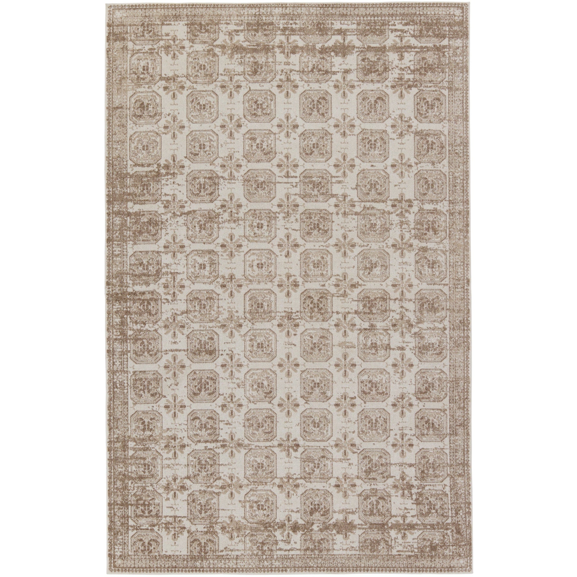 The incredibly chic Nadine collection offers durability and easy-care without compromising one bit on the style. This kid and pet-friendly assortment of rugs features a washable quality and a range of globally inspired designs that anchor rooms with eye-catching appeal. The Milea rug showcases a slightly distressed trellis pattern in tan on a cream and beige striated background. The 100% polyester fibers provide a slight sheen and lasting quality that thrives in high traffic areas of the home such as kitchens, bathrooms, living rooms, bedrooms, and halls.