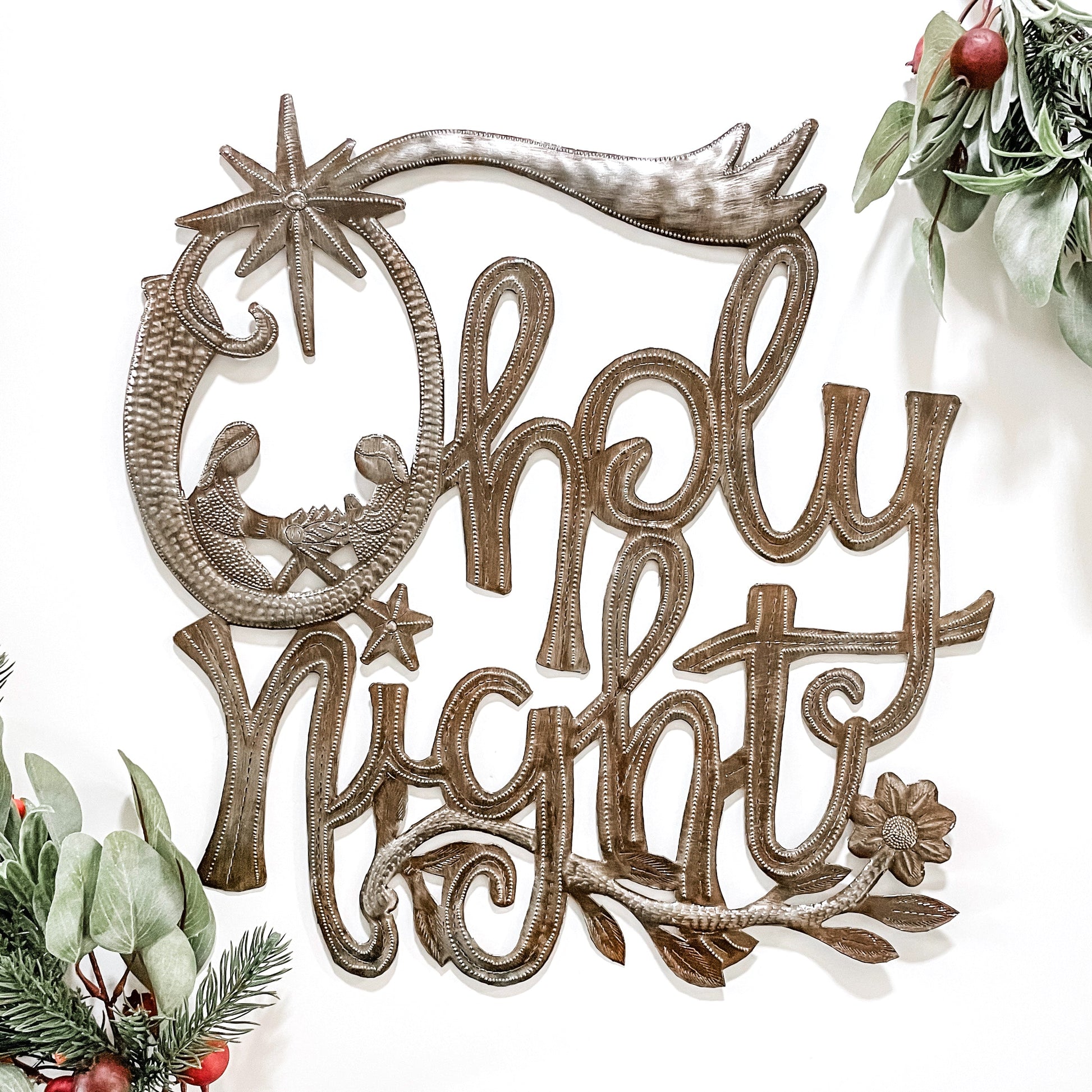 This O Holy Night Wall Art is a beautiful addition to any home. This unique piece of wall art features steel drum art from Haiti, creating a stunning representation of the holiday season. Hang it up and spread the joy of the season with this one-of-a-kind décor.