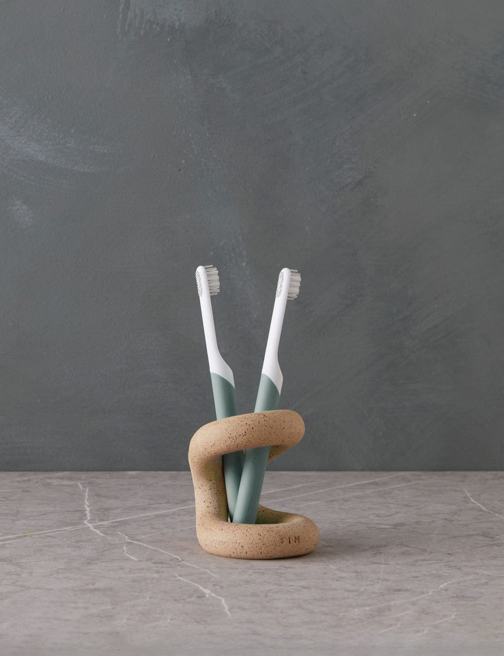 SIN is a Brooklyn-based brand that offers beautiful, handmade pieces designed with intention. This sculptural holder is an eye-catching addition to your bathroom decor, as it stylishly wraps around your toothbrushes.
