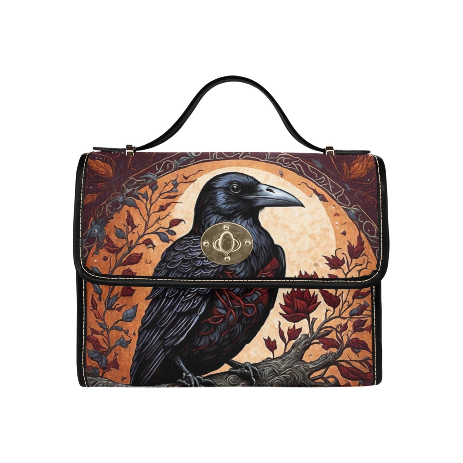 This one of our awesome original designs, featuring a raven on a tree branch with a orange theme and red flowers. Awe your friends and acquaintances when you bring this bag to your lunch with friends or the office. Use it to carry books to class along with your personal items.