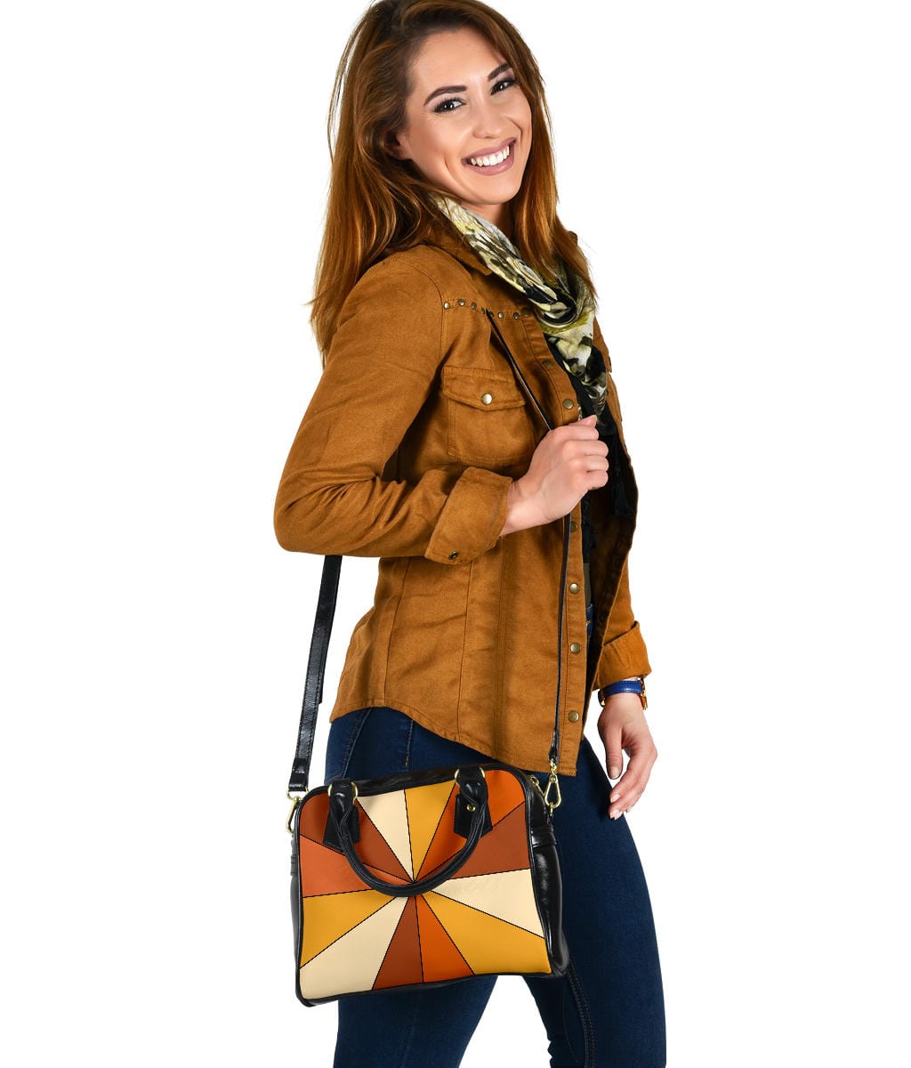 Vintage 1970s Rust Burnt Orange Yellow & Beige Retro Rays | Leather Shoulder Bag