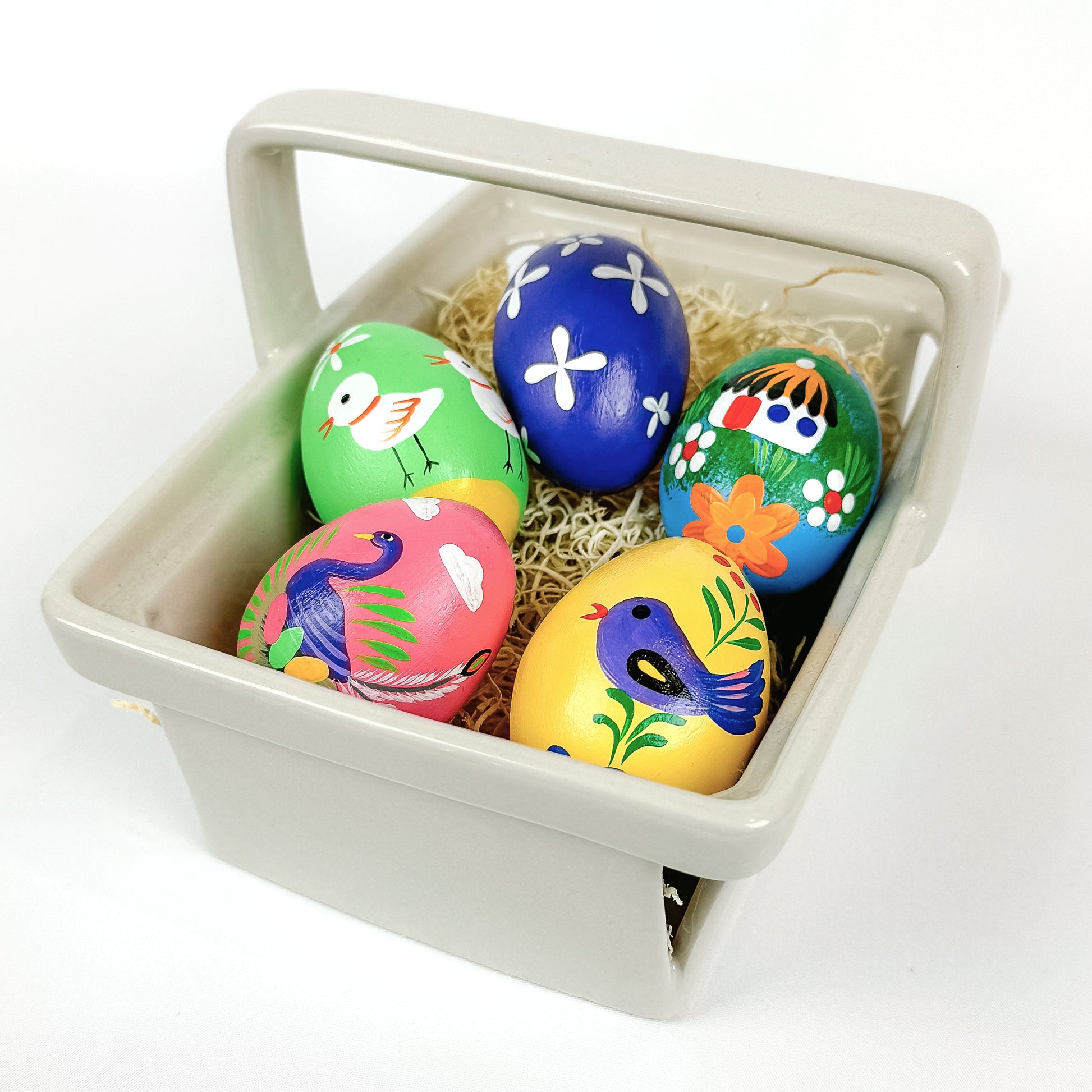 On the hunt for charming Easter decor? The search is over with this darling set of five wooden eggs. Each egg is individually hand-carved and hand-painted by artisans at Flutemaker Ministries in Nicaragua.