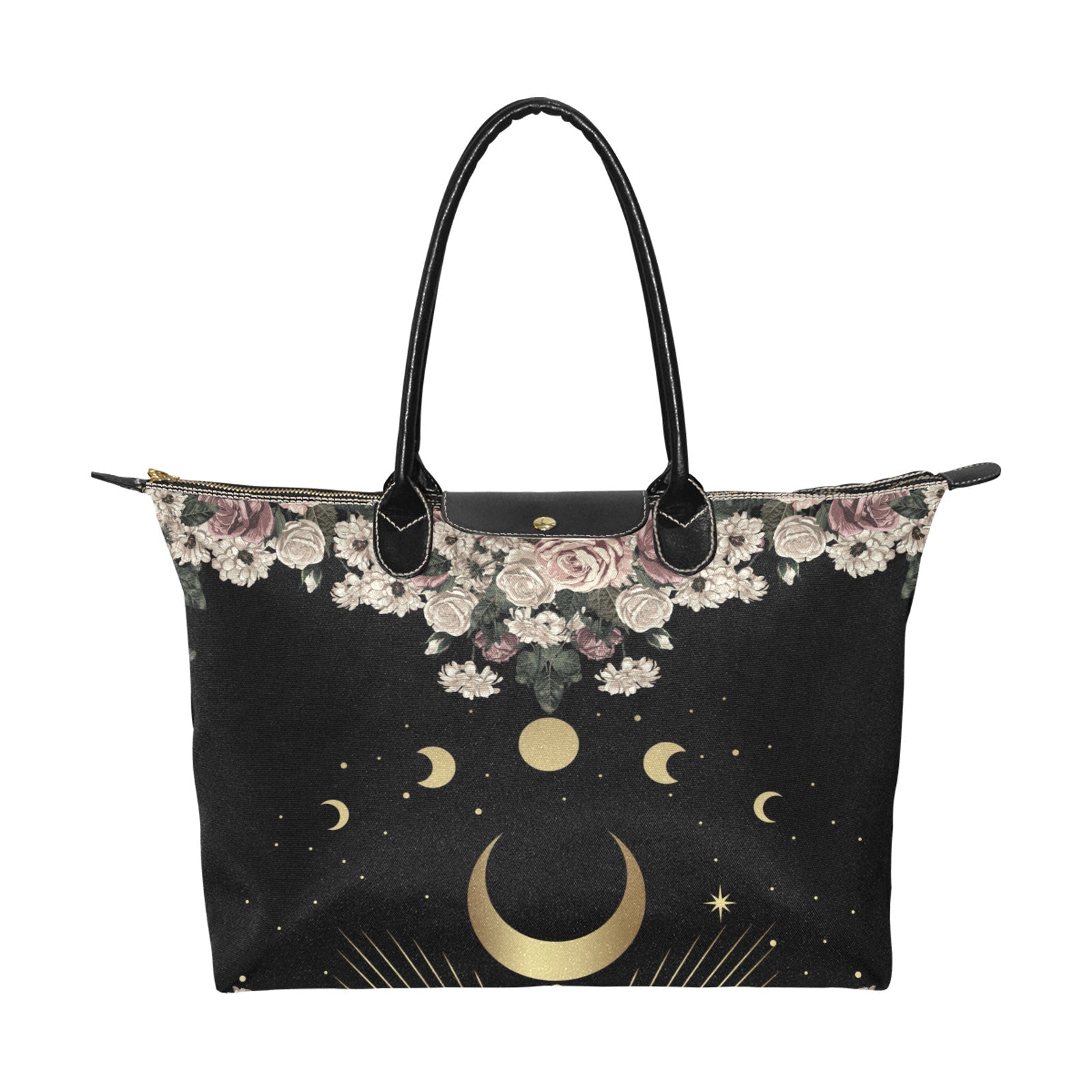 Pale rose moon phase Witch zip tote Women's Classic Handbag