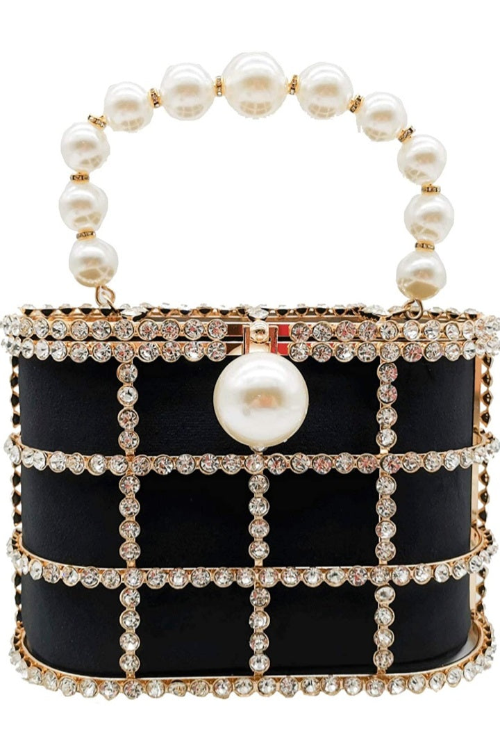 Black Evening Pearl and Rhinestone Handbag