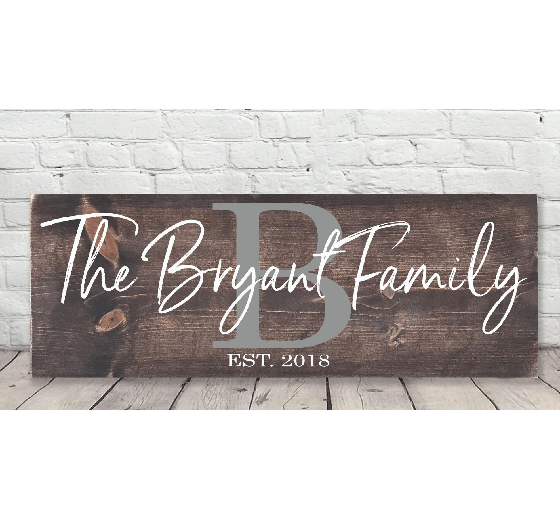 Family Name Sign Beautiful dark stained wood with white lettering & established date, and gray initial