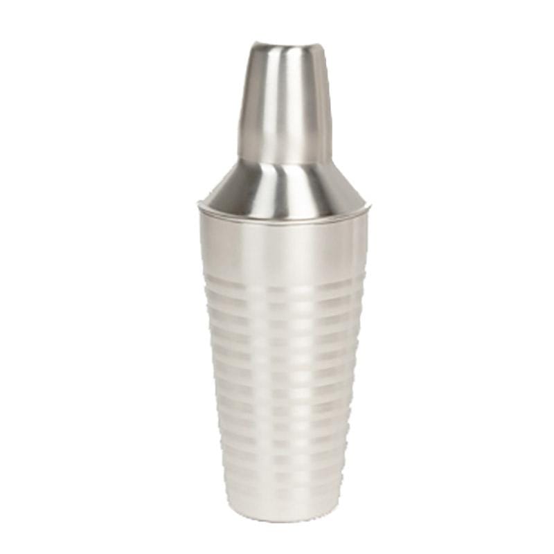Set of ice bucket and cocktail shaker in matte nickel finish with undulating design