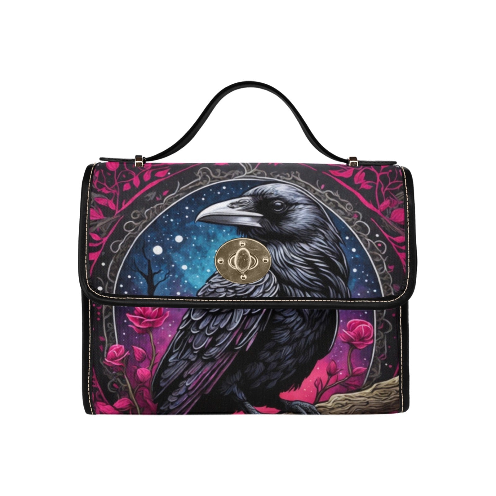 This one of our awesome original designs featuring a raven on a tree branch with a celestial night sky background and pink flowers bag. Awe your friends and acquaintances when you bring this bag to your lunch with friends or the office. Use it to carry books to class along with your personal items.