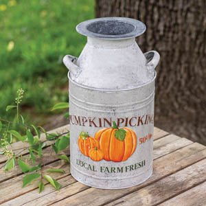 Add your favorite fall florals and add an instant pop of color and charm to your fall decor with our decorative Pumpkin Picking Milk Can.
